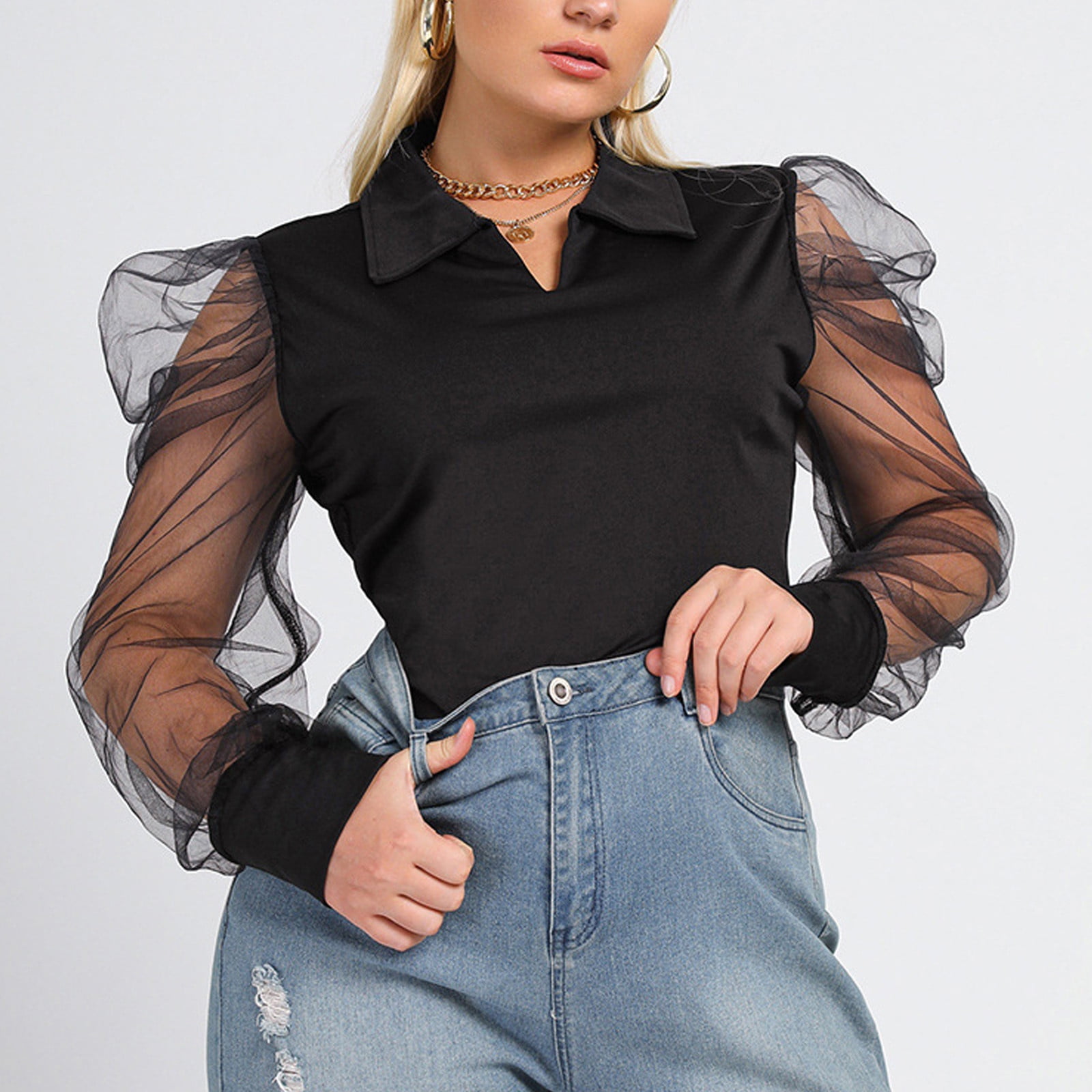 Yotami Womens Tops Fashion V Neck Plus Size Stitching Mesh Polka Dot Long Sleeve Top Blouse Streetwear Xl Black Walmart Com